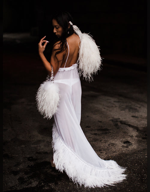 Satin Robe Set with Ostrich Feather Trim -